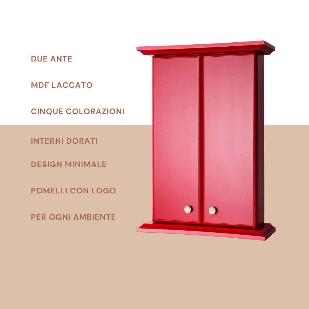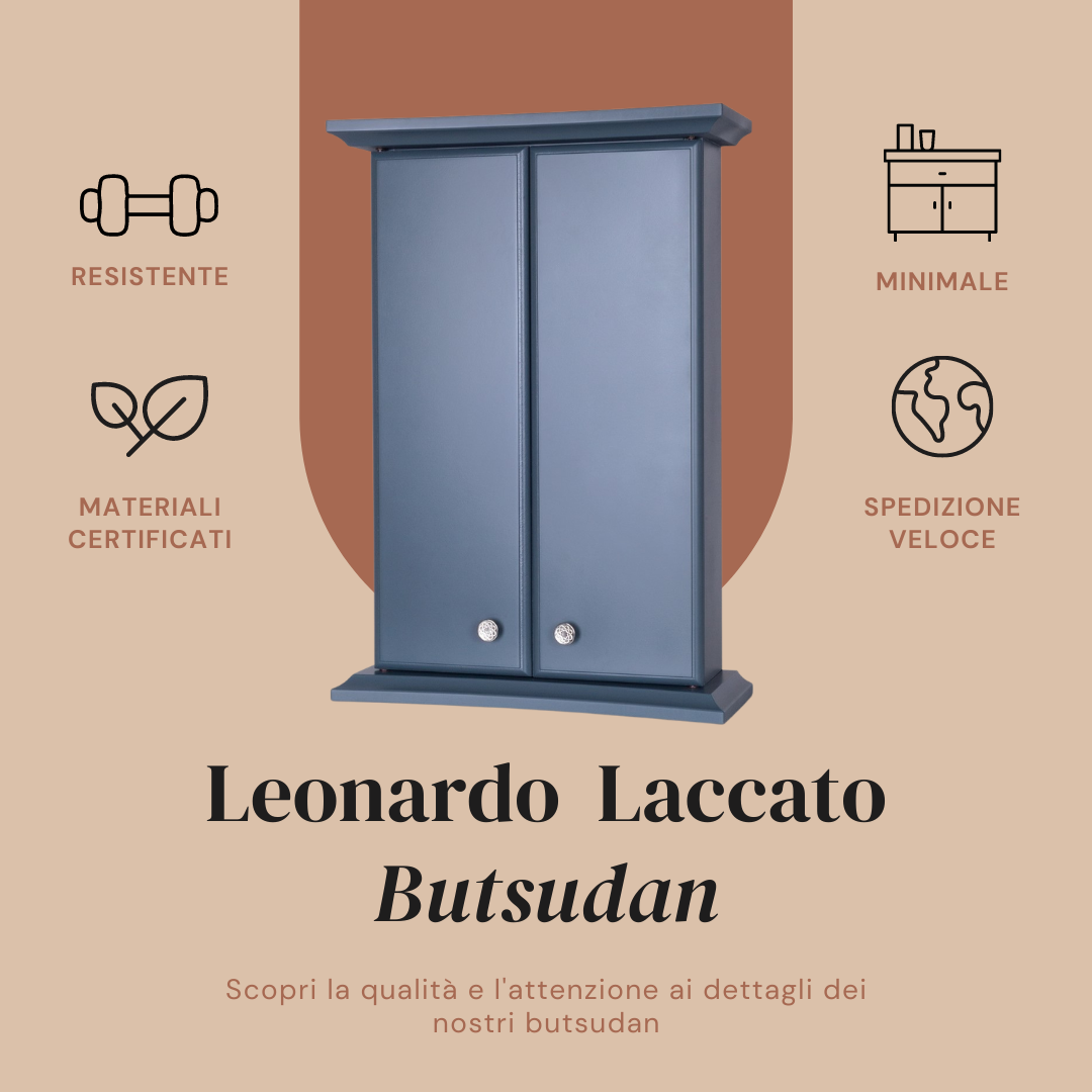 Handcrafted butsudan made of MDF, produced entirely in Italy. The knobs are engraved with the SGI symbol. Available in 5 colors. It features an interior light. The lacquered version is suitable for a modern environment, and the color contrast makes it a model that blends perfectly into today's environments.