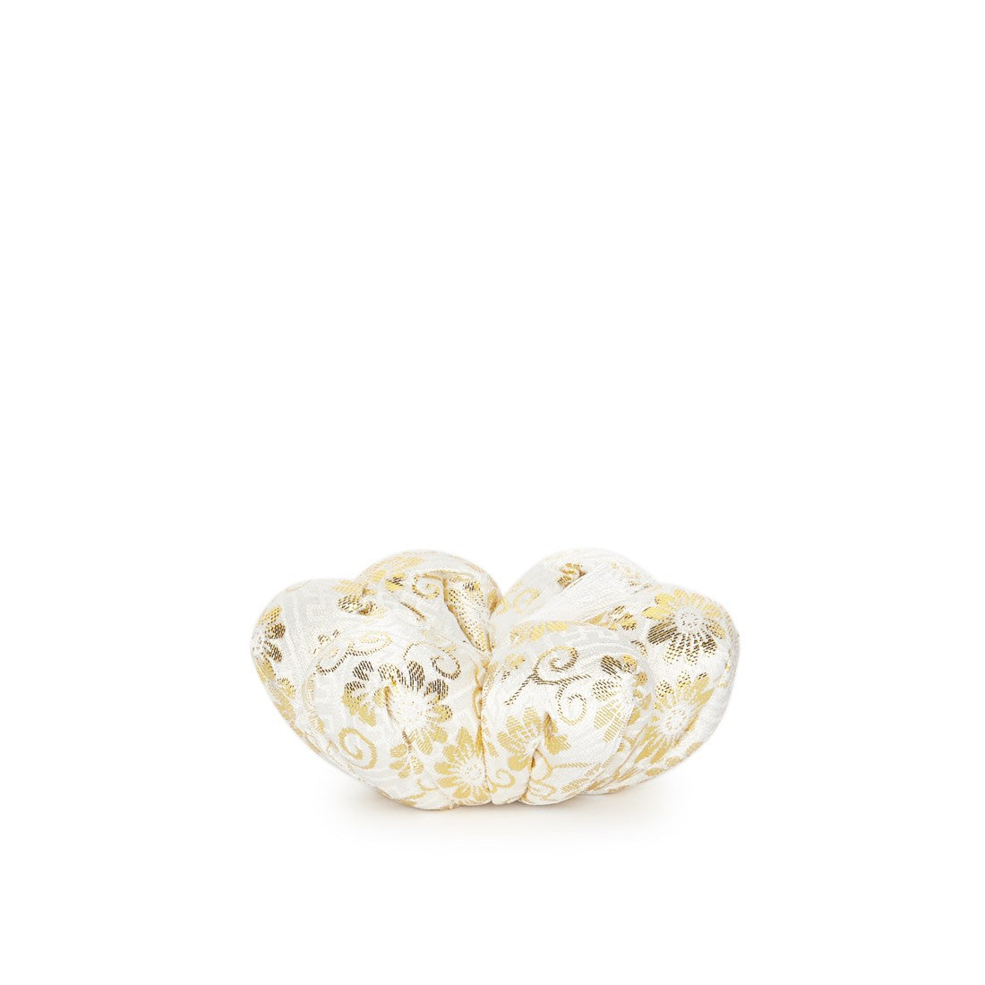 Upholstered pillow lined in white fabric and decorated with flowers with gold threads. Its shape allows it to perfectly accommodate the 2.8 bell and to be placed on its base (these items are sold separately). Made in Japan, with a classic Oriental design recognizable by the golden thread decorations on white fabric.