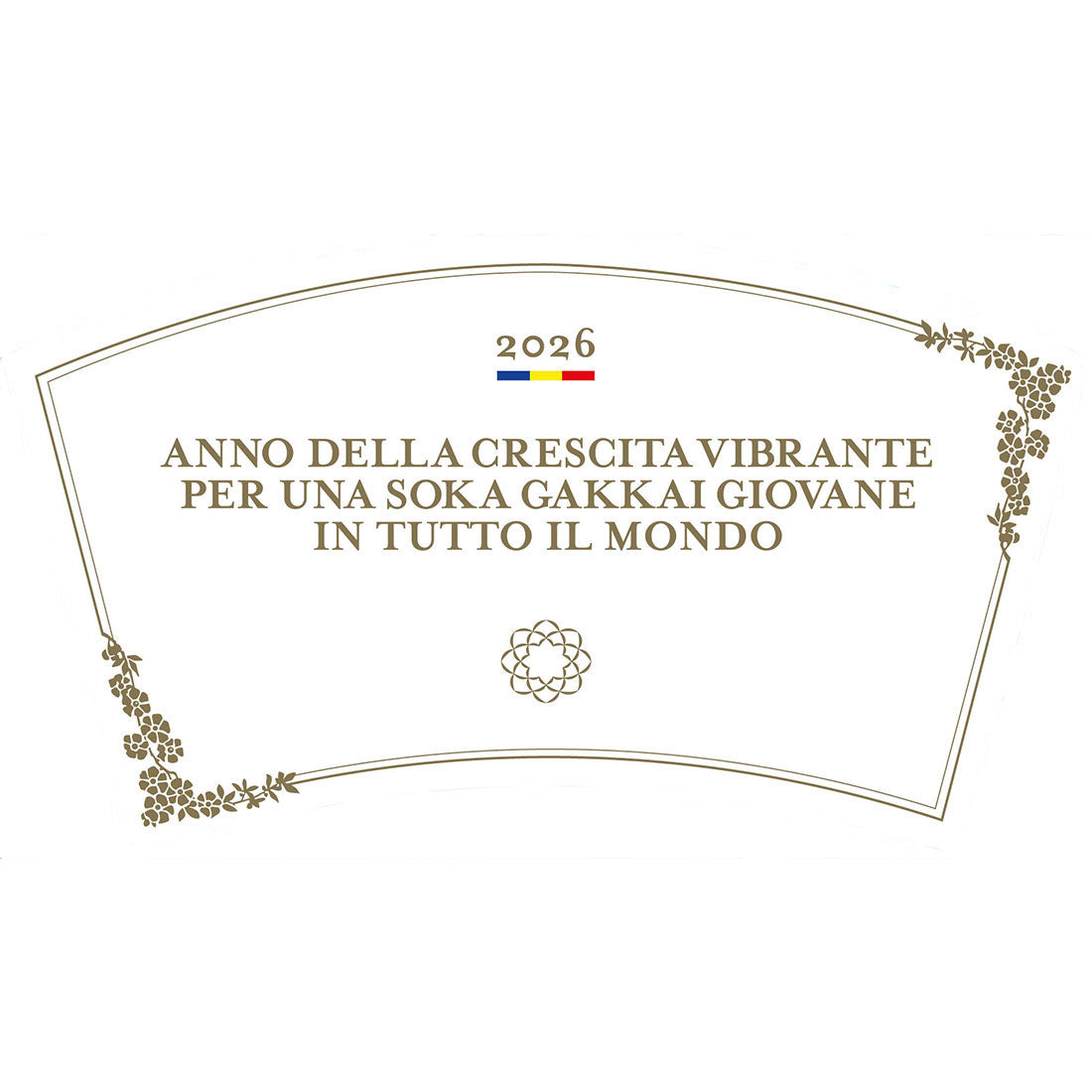 Stand da tavolo con il motto 2026 della Soka Gakkai: