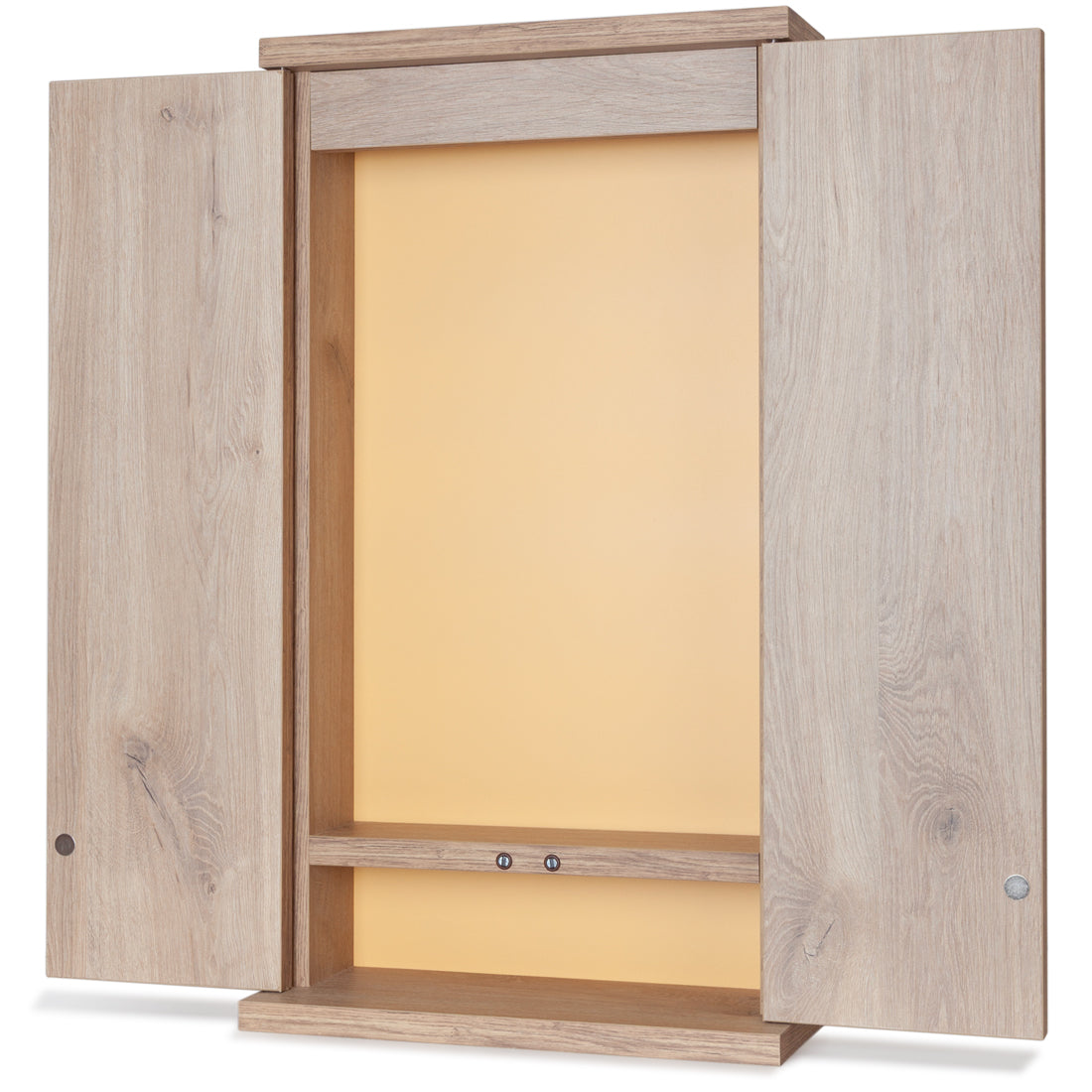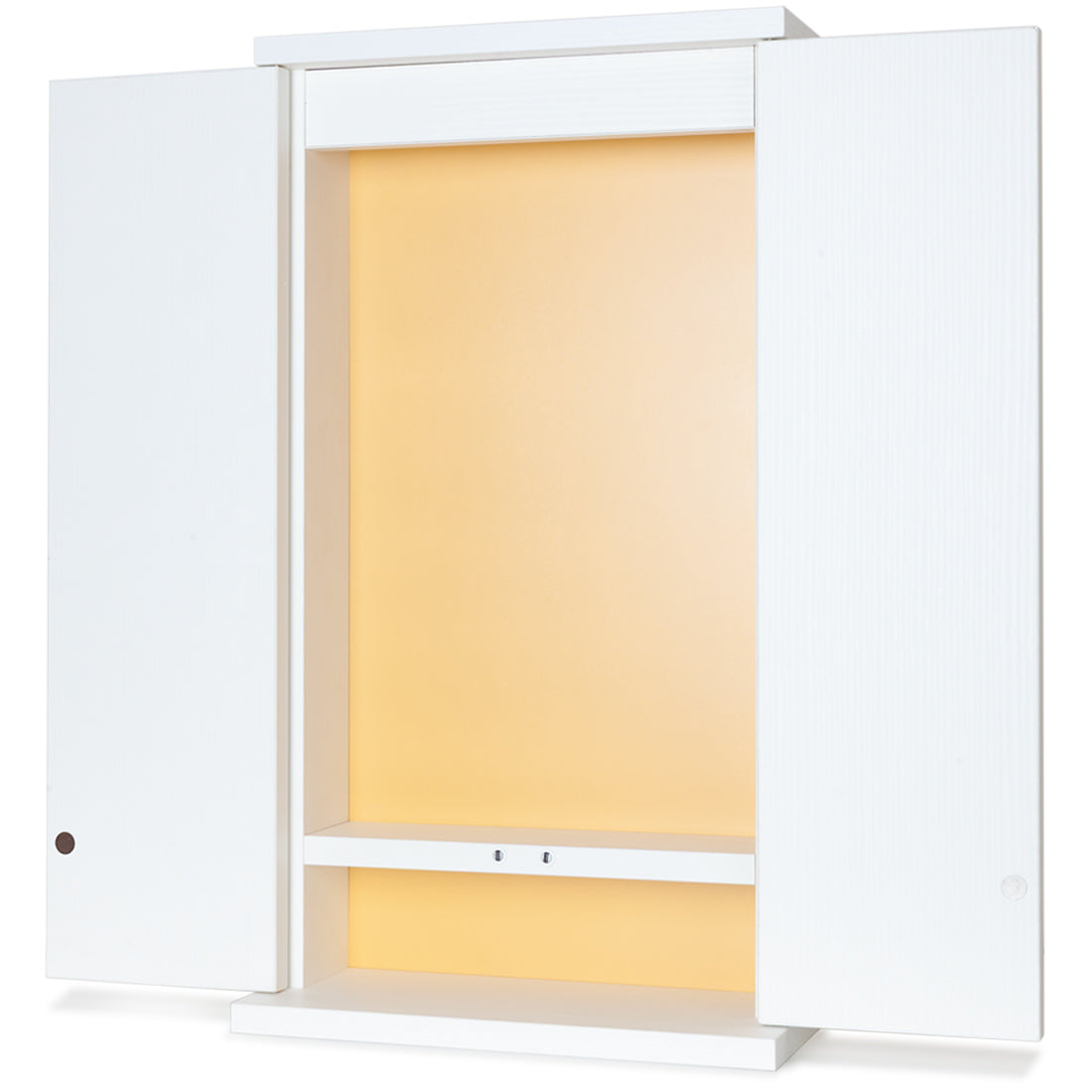 Butsudan a due ante in nobilitato di pioppo. Prodotto in Italia. È adatto a chi si affaccia per la prima volta alla ricerca di un altare per custodire il gohonzon.