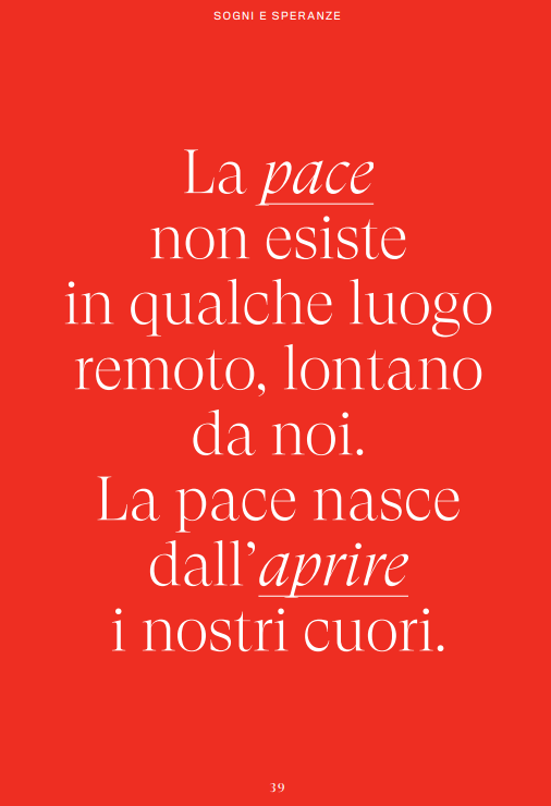 «La vita di un essere umano è un susseguirsi di cambiamenti. Ciò che fino a ieri sembrava stabile e immutabile, oggi può cambiare improvvisamente, in meglio o in peggio. A trasmetterci forza in questo mare di cambiamenti sono le linee guida che illuminano il cammino corretto da percorrere, parole di incoraggiamento che ci rivitalizzano, soprattutto nel mezzo delle difficoltà.»